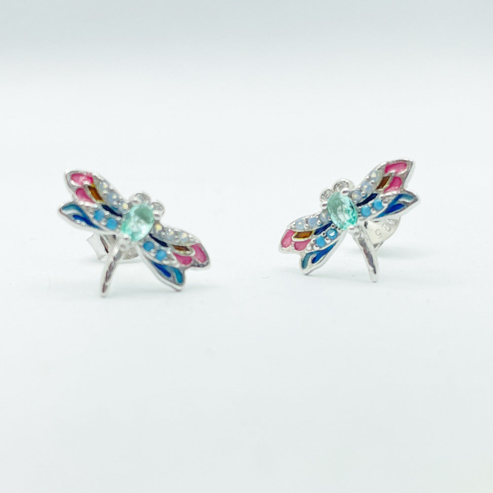 Pendientes de plata con libelulas circonitas multicolor para mujer